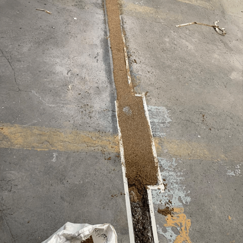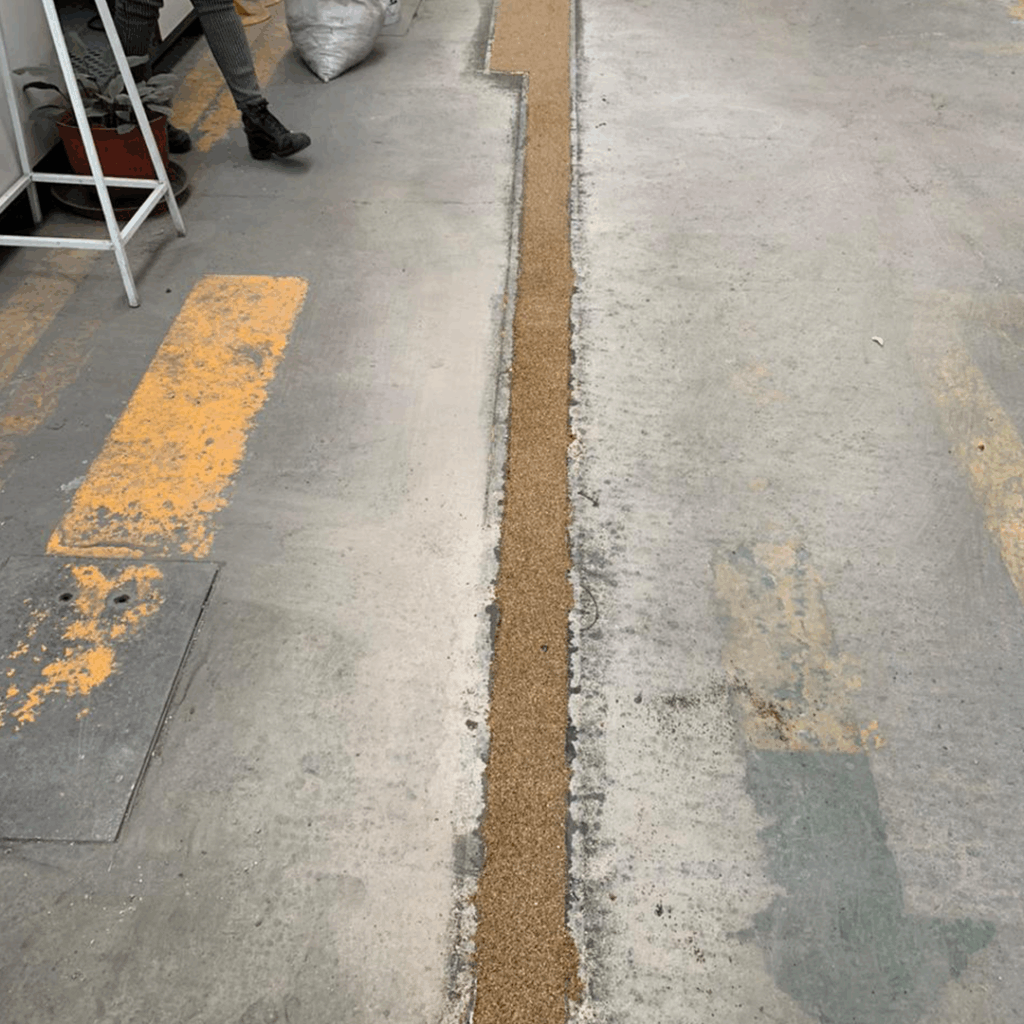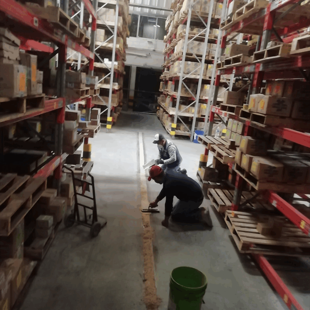 Proceso: Limpieza de la junta, se coloca el sello elástico (cola de rata) o mortero epoxico según sea solicitado por el cliente.