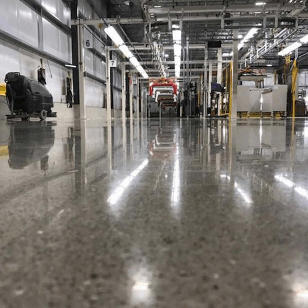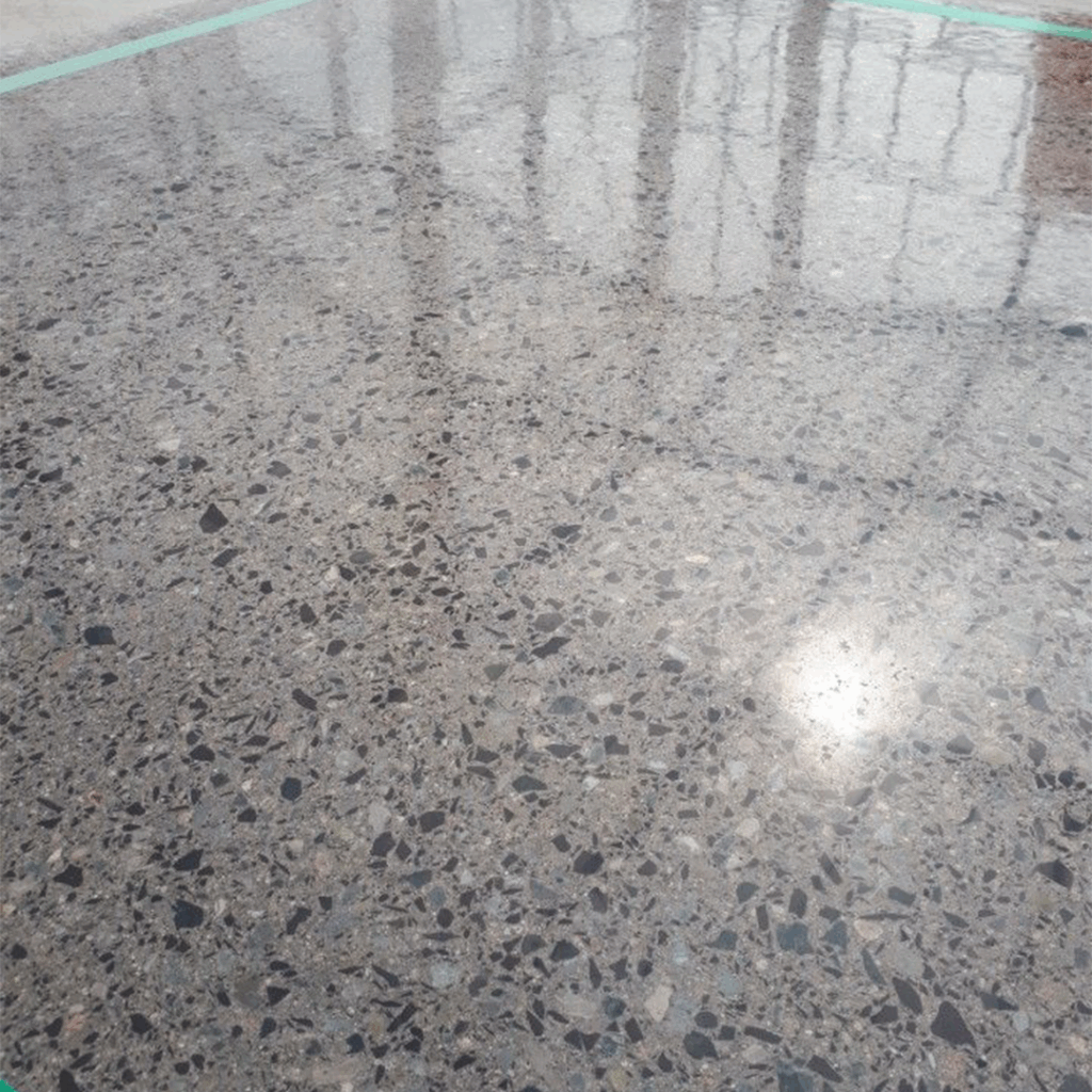 Proceso: Se realiza un pulido progresivo con discos diamantados y se aplica un sellador o densificador para obtener el acabado brillante.