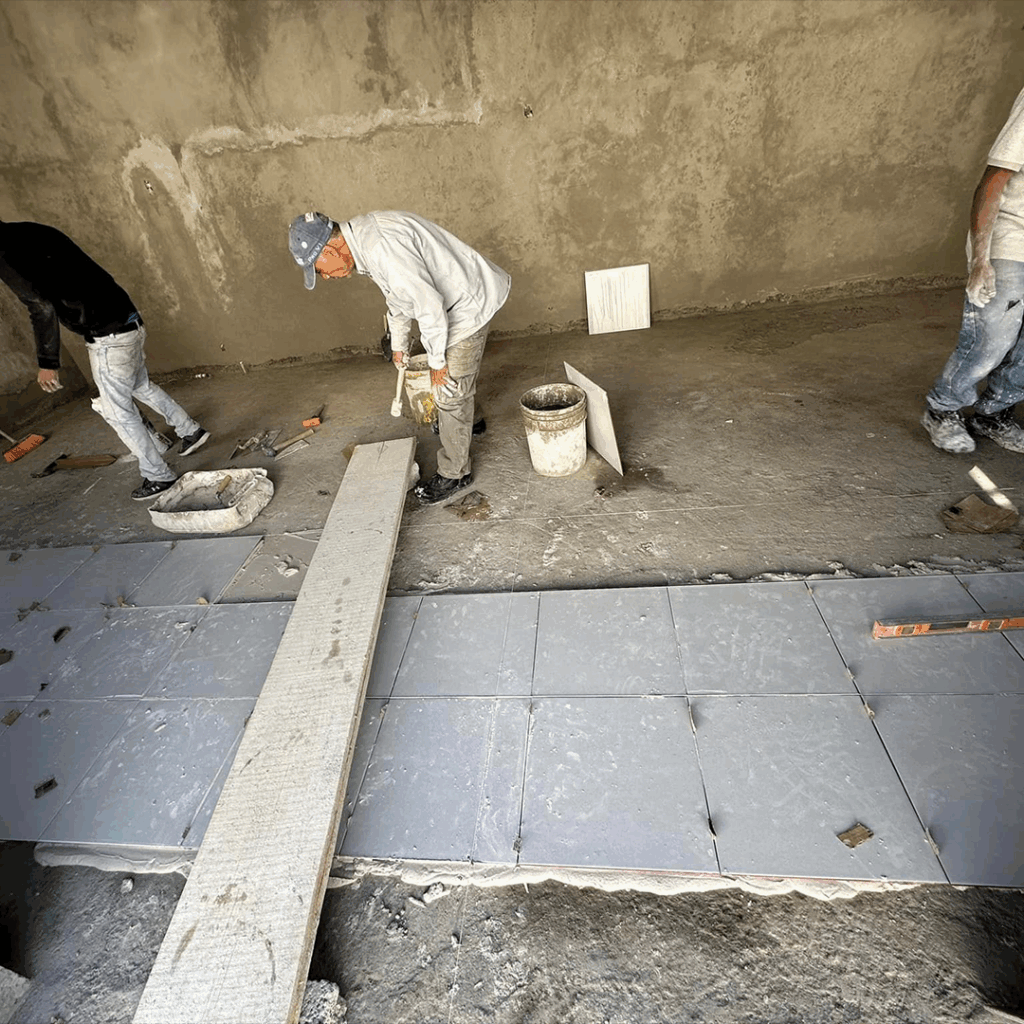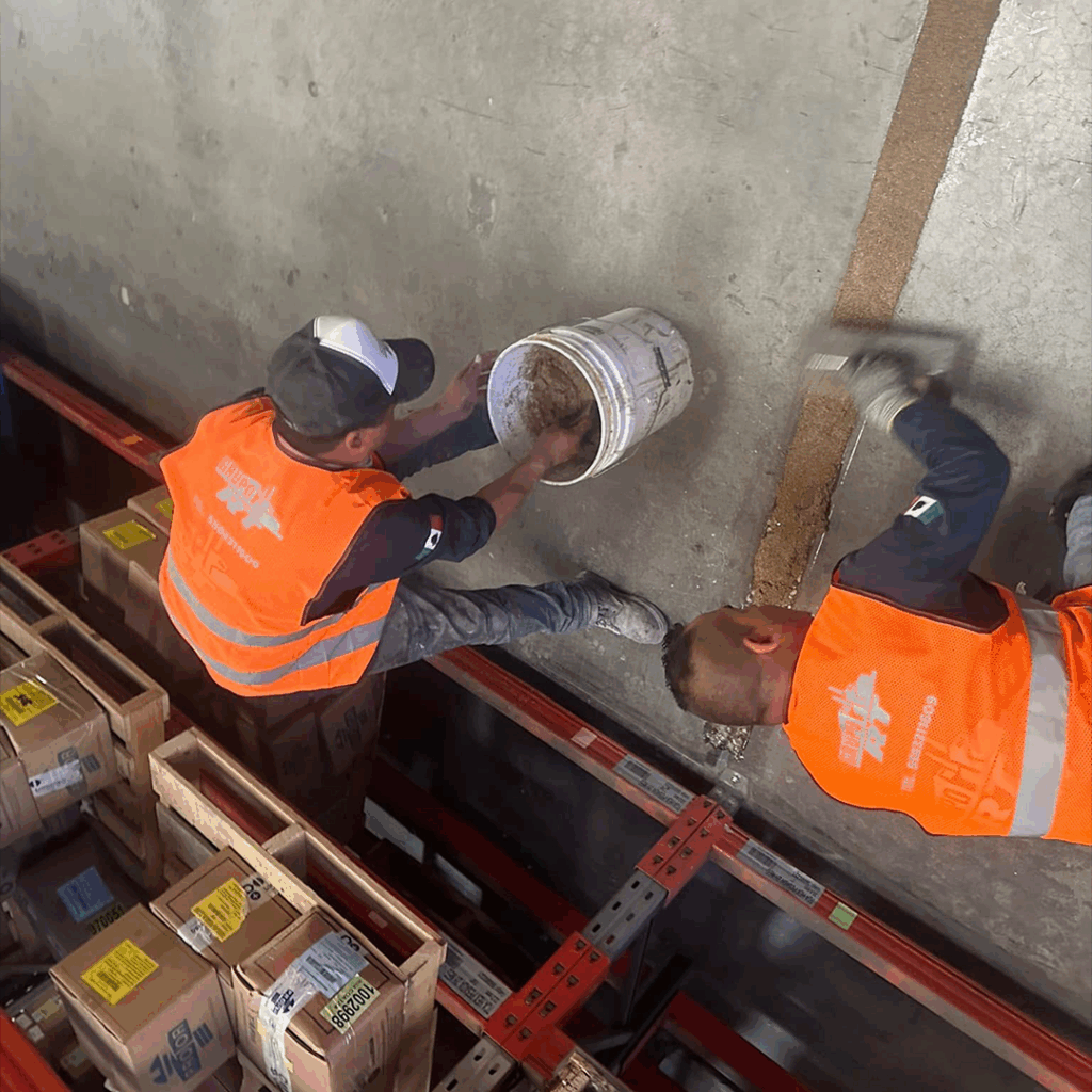 Proceso: Se vierte la mezcla sobre el sustrato preparado y se distribuye con jalador dentado o con rodillo, dejando que fluya hasta auto nivelarse.