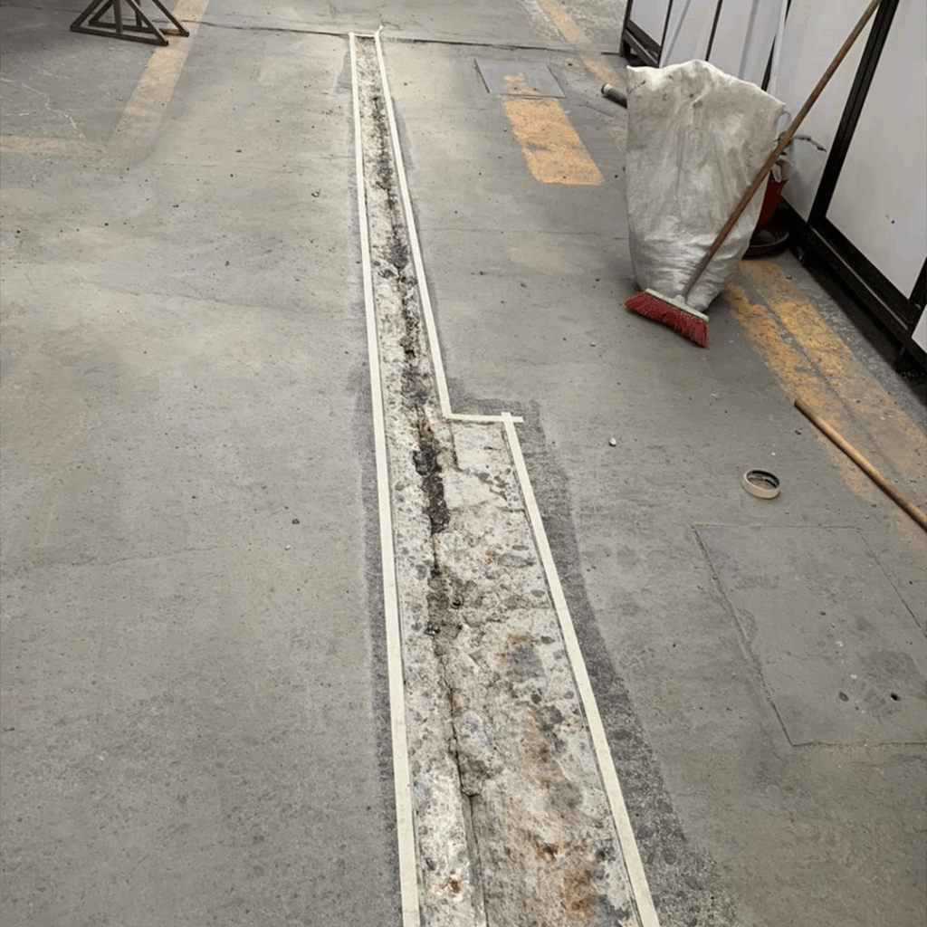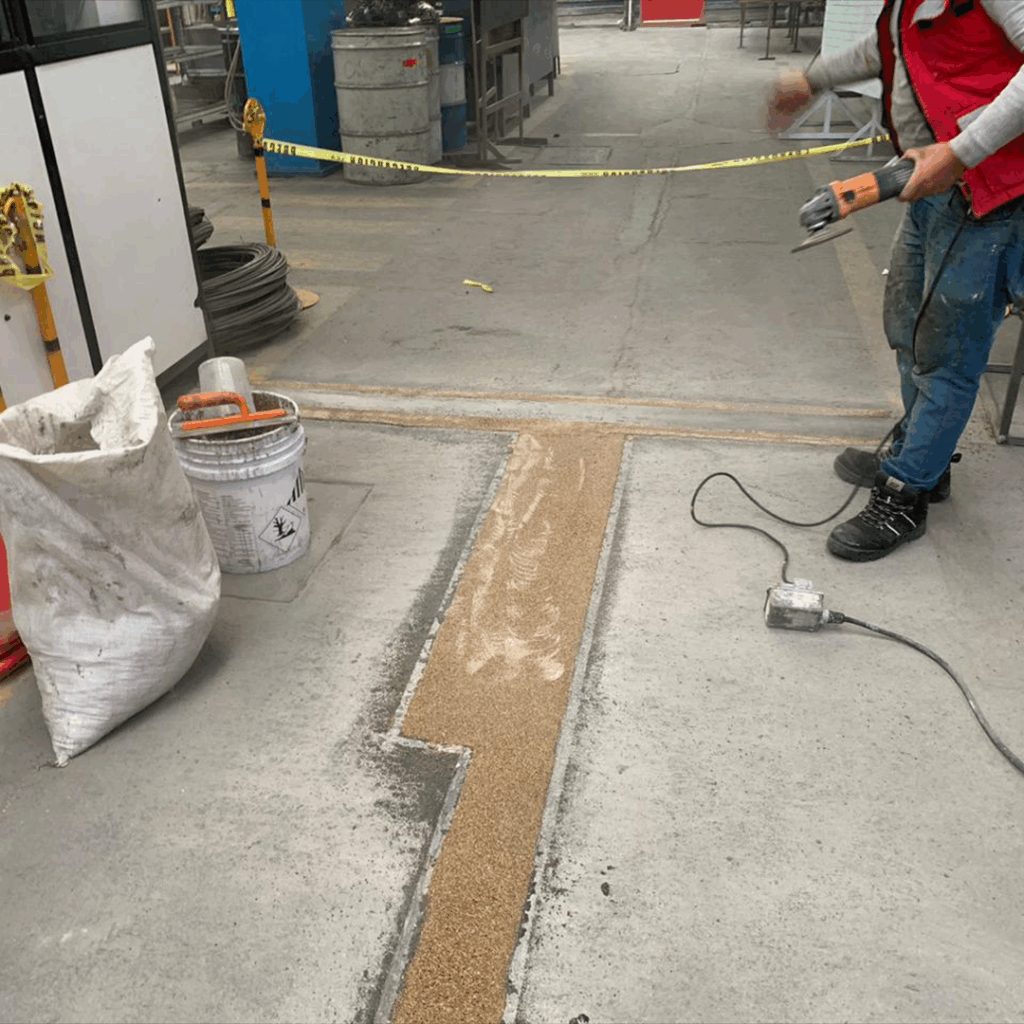 Descripción técnica: Encajonamiento con mortero epoxico o sello elástico (cola de rata) aplicado en juntas estructurales o de dilatación para evitar filtraciones y proteger contra la entrada de contaminantes.