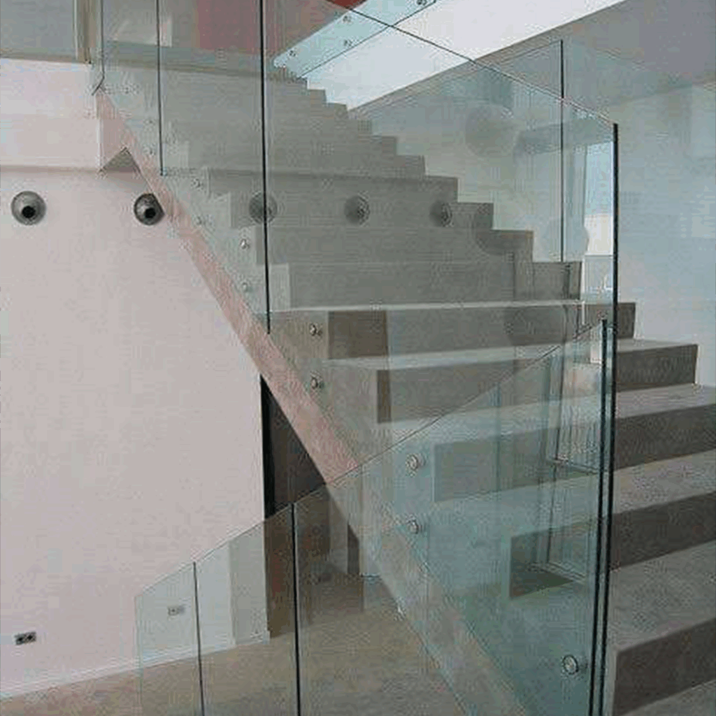 Descripción técnica: Instalación de cristales sometidos a tratamiento térmico para incrementar su resistencia y seguridad, usados en divisiones, barandales y fachadas.
