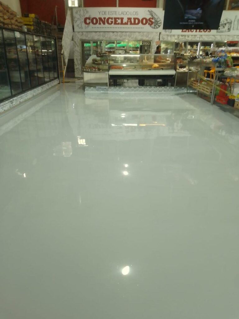 Proceso: Incluye preparación mecánica del sustrato (lijado, granallado, desbastado o escarificado), aplicación de primer epóxico, aplicación de plaste, capa base autonivelante y acabado decorativo o de alto brillo en una gama de colores a elegir.